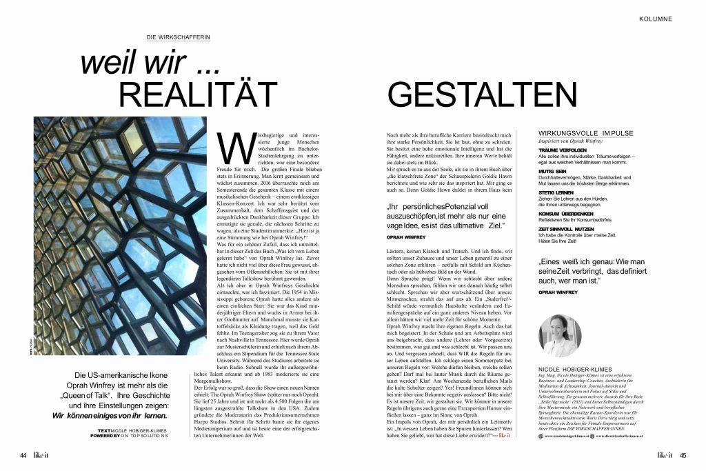 Like it – Magazine: Die Wirkschafferin – WEIL WIR GESTALTEN
